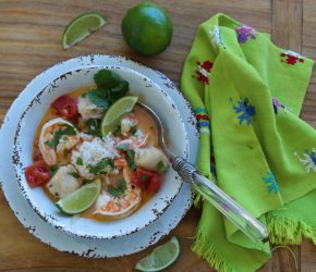 Moqueca is a Spicy Brazilian Shrimp and Fish Stew. (Pronounced “MO’-ke-kuh”) Moquequa is made with unsweetened coconut milk, tomatoes, onions, garlic, lime juice and fish or seafood. You’ll be surprised how easy it is to make, and how many compliments you will receive from your friends and family. They’ll think