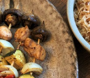 Spicy Datil Pepper Chicken Kabobs and Syrian Rice Pilaf. Something different for the Fourth of July Celebration. My youngest son is home for the summer, and has been helping me in the kitchen. Hunter is turning into quite a chef. He’s interested in all things grilled these days, and with