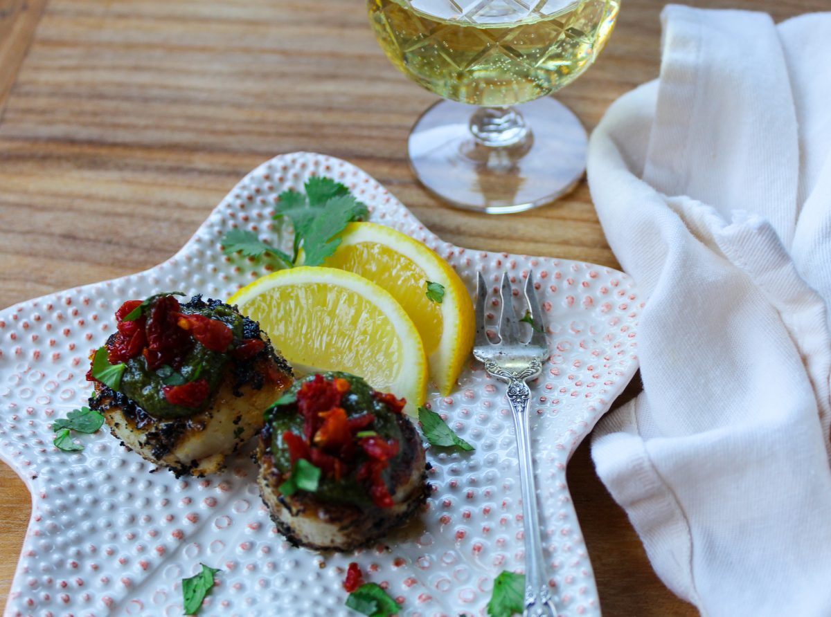I topped these beautiful blackened scallops with a dollop of homemade basil pesto, roasted red peppers, and a squeeze of fresh lemon. Wow! The flavors really popped. The scallops were juicy and tender, and the sweet flavor of the scallops combined with the pungent garlic was absolutely amazing.