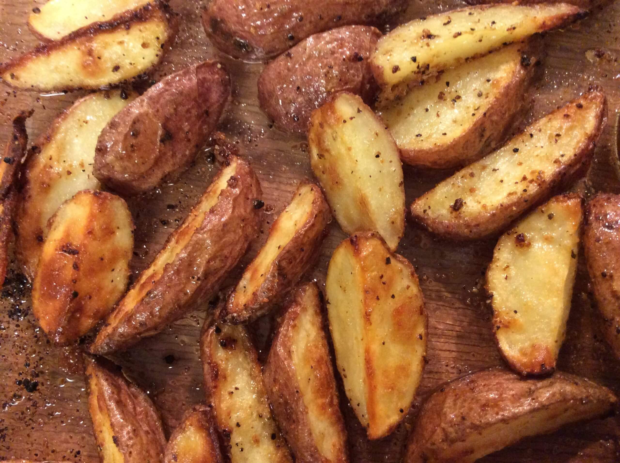 Remove potatoes from the oven and sprinkle with grated parmesan cheese or parsley if desired.