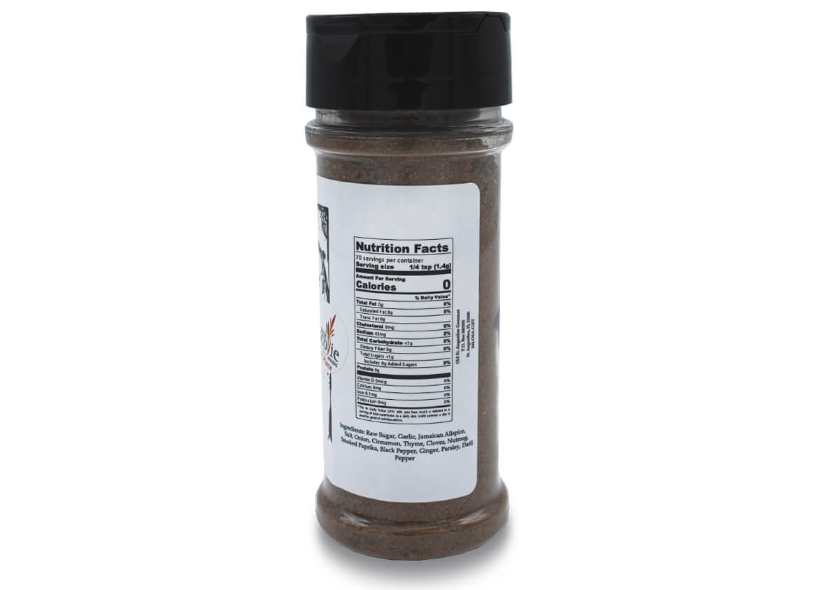 Ingredients: Raw Sugar, Garlic, Jamaican Allspice, Salt, Onion, Cinnamon, Thyme, Cloves, Nutmeg, Smoked Paprika, Black Pepper, Ginger, Parsley, Datil Peppers